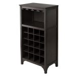 Overall size 19″W x 12.60″D x 37.52″H. Glass hanger inside clearance 16.73″W x 11.06″D x 8.62″H. Top surface area is 19″W x 12.60″D. Individual 20 wine slot is 4″W x 3.9″H x 11.1″D. Made with combination of solid and composite wood in Dark Espresso Finish. Assembly Required.