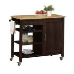 How does one feel like a master chef? This beautifully crafted Calgary kitchen cart provides you with extra storage space, extra preparation space, and it’s marvelously mobile! This cart features a wonderful, large wood top surface with plenty of room for your food preparation. This island style cart also has a cabinet door which opens to an adjustable shelf inside for that much need storage of pots and pans. The large drawer opens on metal glides to store extra cooking utensils. Open storage shelving provides easy access to frequently used items, and is perfect for displaying decorative objects. The extra touch of the wine and towel rack give that extra attention to detail.
