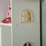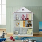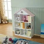The bookshelf is designed like a dollhouse, complete with windows and a roof, giving your child a playful environment to store their favorite items. The bookshelf is also perfect for encouraging your child to read, with its eye-catching design.
