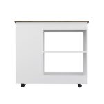 Petal Kitchen Cart, sometimes we need more storage in our kitchens, but we don’t know the exact space for that and its necessary mobility, with the Petal kitchen cart and its caster wheels, you can move it according to your necessities. Whit a contemporary style and a great storage capacity, you can organize all your utensils and containers; it is a perfect countertop used as an auxiliary table. Includes two large shelves (11,3” H x 11,9” H X 22,8” W X 15.7” D) and three side shelves (35,2” H X 10,2” H each one, 13,7”W). Designed with an elegant white-dark brown manufactured wood finish.