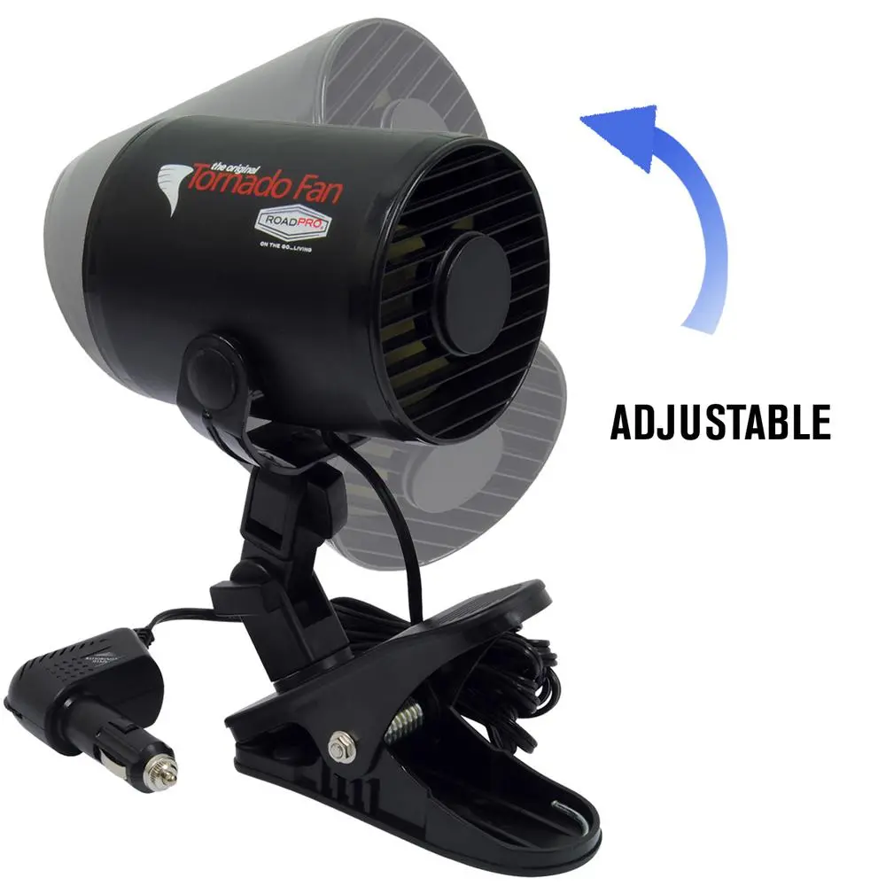 Enjoy a refreshing breeze in your cab or camper. This mini clip-on fan plugs directly into a 12-volt power port and has a variable speed control. Aim directly where cooling air is needed. Circulates air quickly to help distribute your heat or AC airflow. Adjustable swivel base and a mounting clip makes it easy to install and use. It has a 10 Amp fused 11-foot power cord. For a small cab fan it really moves the air. Attach this little guy to the edge of a built-in cabinet in the sleeper area of your truck and you can enjoy a nice breeze while you rest. Be sure to place the plug firmly in your 12-volt outlet. The compact design of this fan makes it ideal for use while traveling. RoadPro has everything you need to be your most comfortable and your most productive out on the road no matter what you do. This trucker cab fan is just another off-the-grid accessory that enables you to enjoy the comforts of home while traveling and improve your life on the road. included for those who want the power of the 12V Tornado Fan on a more permanent mount setup. Features 11-feet Fused Power Cord Power Consumption 4amps (48watts) ,Note the fan is connected to a mounting clip the mounting clip cannot be taken off. The mounting clip can however be hard mounted. There are holes at the bottom of the mount.