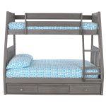 This ready-to-assemble unit in a fashionable charcoal grey finish features a twin over full bunk bed with a three-drawer under-bed storage unit. The drawers feature metal guides and attractive chrome pulls. Quality and solid wood construction makes this bed a great buy.