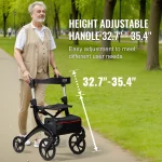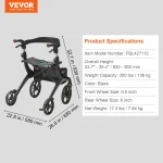 VEVOR Folding Rollator Walker for Seniors and Adults, Lightweight Aluminum Rolling Walker with Seat and Adjustable Handle, 4-Wheel Outdoor Mobility Walker with Spacious Storage Bag, 300LBS Capacity