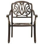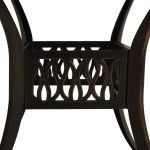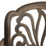 This patio bistro set, made of cast aluminum, provides a comfortable seating experience for you and your guests.