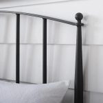 Modern farmhouse design Constructed of sturdy steel Powder-coated black finish Arched headboard Tapered posts with ball finials Headboard fits most standard bed frames Mattress, box spring, and bedding not included Footboard and rails sold separately Compatible with adjustable bed frames Pairs well with modern and traditional decor